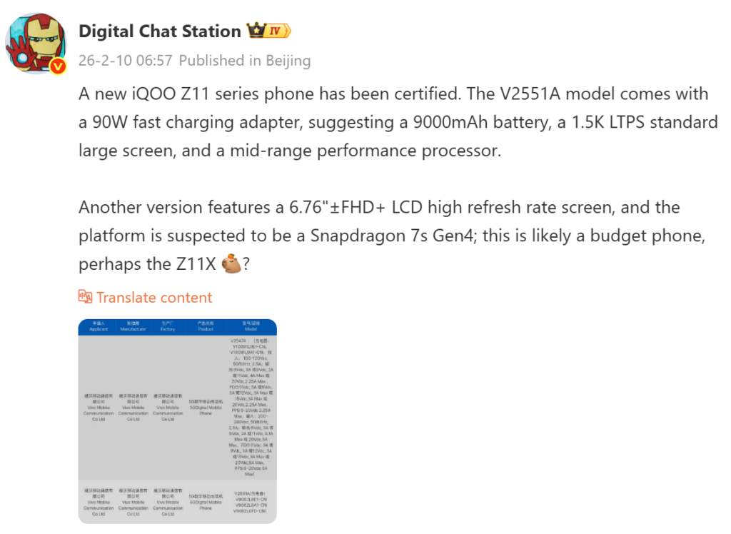 iQOO has just launched the iQOO Z11 Turbo equipped with the Snapdragon 8 Gen 5 chip in China. Rumors are rife that the brand will soon expand the Z11 lineup by announcing models like the Z11 and Z11x. In a new Weibo post, tipster Digital Chat Station has reportedly shared details about these upcoming Z-series phones.