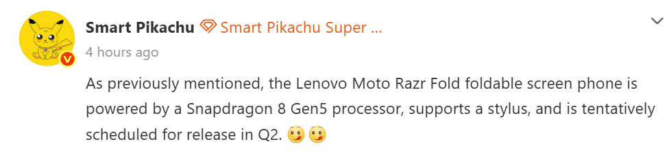 At the CES 2026 event, Motorola unveiled the Razr Fold as its first-ever book-style foldable phone. So far, the brand has confirmed only a few key specifications of the device and has yet to reveal its official release date. In a new development, tipster Smart Pikachu has indicated when the Razr Fold could reach the market, offering some clarity for those waiting for Motorola’s entry into the book-style foldable segment.