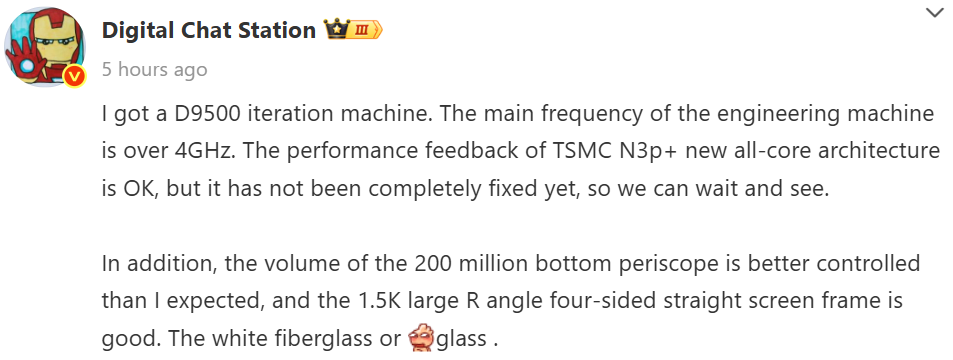 The above leak suggests that the engineering prototype of the Oppo Find X9 Pro features the upcoming Dimensity 9500 chipset. He revealed that the chipset, which is said to be built with TSMC’s advanced N3P+ process, has a CPU clock speed exceeding 4GHz. He added that the performance feedback so far appears promising, and further observation is recommended.