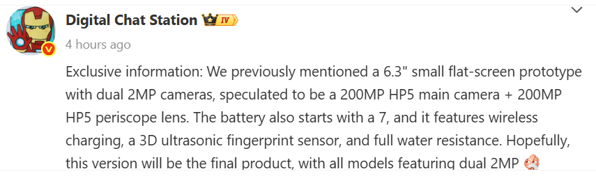 While the leak does not specify the chipset of the device, it is speculated to feature the Dimensity 9500, which could be an overclocked version of the existing Dimensity 9500.