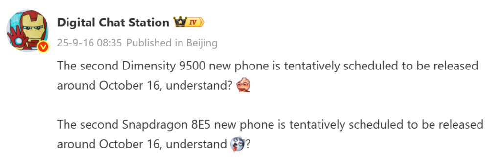 According to the above leak, the Oppo Find X9 series is scheduled to launch around Oct. 16. As is known, the Find X9 and X9 Pro will come equipped with the Dimensity 9500 chipset. The above leak also suggests that the Honor Magic 8 series featuring the Snapdragon 8 Elite Gen 5 will also launch around Oct. 16.