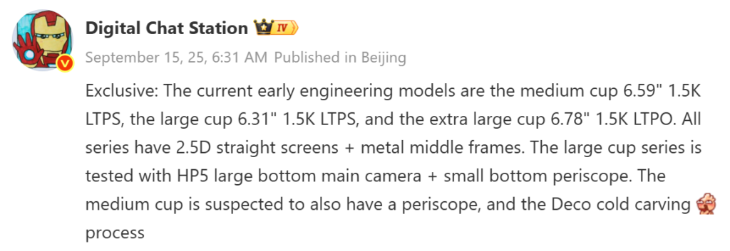 The tipster did not mention the final marketing names of these models. The 6.3-inch and 6.78-inch models may arrive with Pro branding.
