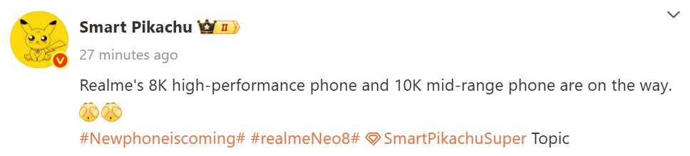 While there is no clarity about the final marketing name of the 10,000mAh Realme phone, the hashtag used in the post reveals that the 8,000mAh battery phone could be called the Realme Neo 8. The tipster did not reveal any information about the launch timeframe of the Neo 8. However, it appears that the device may hit the Chinese market after the GT 8 series, which will launch in October in China.