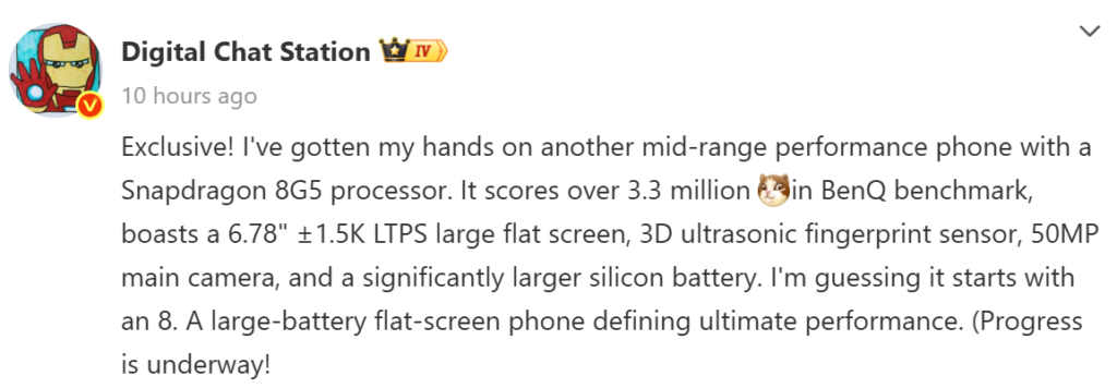 While the tipster has not mentioned the name of the device in the leak, the emoji used in the post hints that he could be talking about an upcoming Realme phone. Considering that the brand has already launched two GT-branded flagship phones in China, it appears that the tipster could be talking about a Neo-series flagship, probably, the Neo 8.