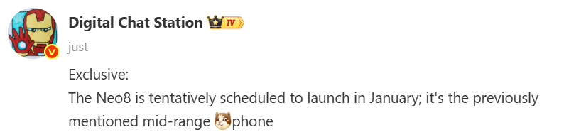 According to the tipster, the Realme Neo 8, equipped with the Snapdragon 8 Gen 5 chip, will be announced in January 2026. The leak has no other information about the device’s other specifications.