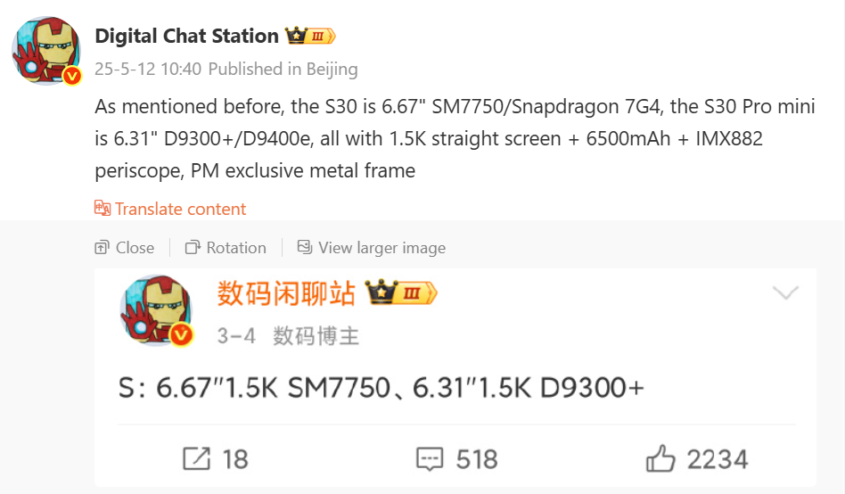 The Vivo S30 Pro Mini, on the other hand, will also have the same battery, periscope camera, and middle frame. However, it will have a smaller 6.31-inch OLED 1.5K screen like the X200 Pro Mini and will feature the upcoming Dimensity 9400e chip.