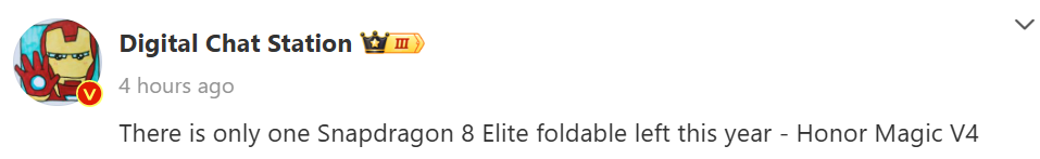 A new Weibo post by the tipster claims that the only Snapdragon 8 Elite-powered foldable remaining to launch this year is the Magic V4. This indirectly indicates that Vivo may have decided to cancel the Vivo X Fold 4 Pro.