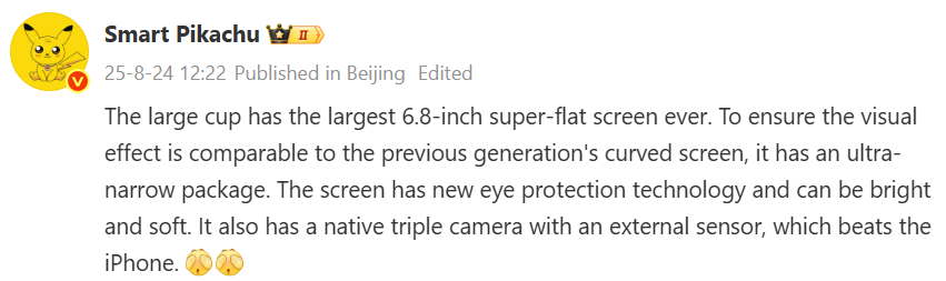 He added that to ensure the visual experience is not inferior to the previous curved screen design, the Xiaomi 16 Pro’s display adopts an ultra-narrow bezel structure. The screen also comes with new eye-protection technology, offering both high brightness and softness.