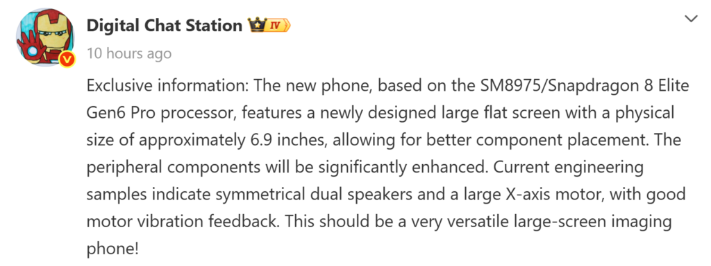 According to tipster Digital Chat Station, an upcoming flagship powered by Qualcomm’s SM8975 chip is currently being tested. This processor is expected to be marketed as the Snapdragon 8 Elite Gen 6 Pro. Although the device name was not explicitly mentioned, the specifications strongly suggest it could be the Xiaomi 18 Pro Max.